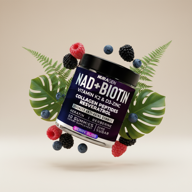 NuraGen is a premium daily gummy designed to restore natural energy, promote healthy skin and hair, and help your body fight fatigue from the inside out. It works by supporting NAD+ production and cell renewal so you feel refreshed, focused, and confident every day.